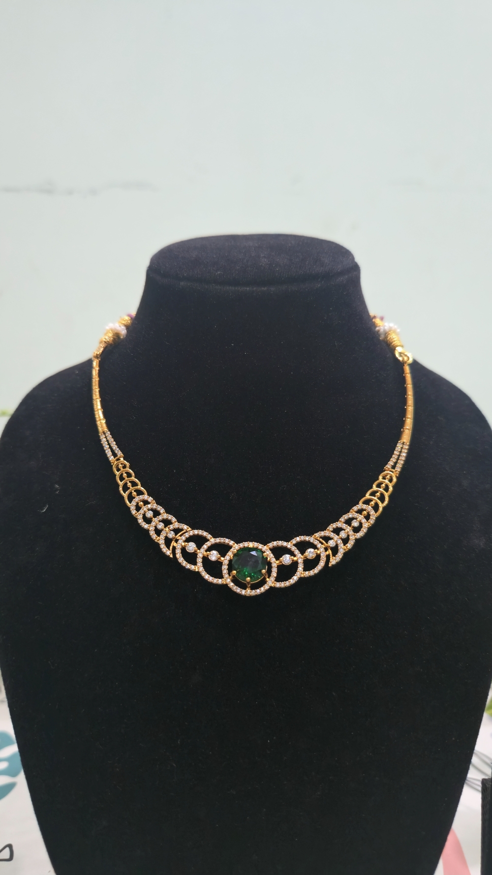 Embrace timeless elegance with this Kanti Model Necklace with Green Stone, beautifully handcrafted to reflect the charm of South Indian tradition.