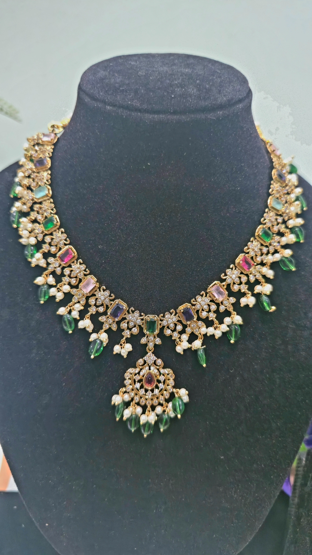 Bring home a piece of South Indian heritage with our Multicolor Butta Pusalu Necklace Set.